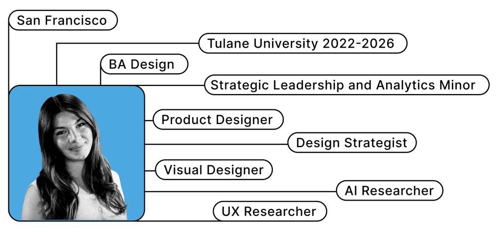My degree in Design gives me a holistic, creative foundation, training me to think visually, conceptually, and systemically in all contexts. Paired with my minor in Strategic Analytics, I bring a strong understanding of business and data, which helps me design experiences that not only please users but also drive measurable impact.